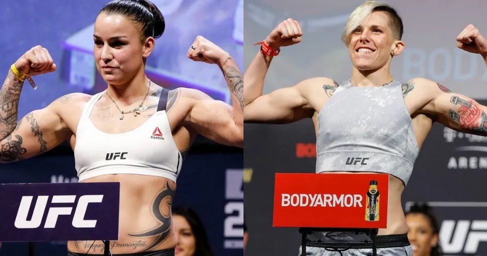 Chiasson (#9 CC, #10 UFC) is taking this fight on short notice after Julia Avila (#11 CC, #14 UFC) dropped out with injury. Chiasson (pictured, above right) was supposed to fight in October against Aspen Ladd (#10 CC, #4 UFC), but had to drop out due to COVID. The short notice nature of this bout is why it’s being fought at 145 pounds, instead of their natural 135. Chiasson is also chasing a shot at the belt, being an impressive 5-1 in her UFC career after winning season 28 of The Ultimate Fighter. Three of those wins are by finish.