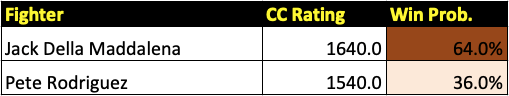 Subjective Spin on Objective Reality: It’s tough to know what to make of Rodriguez, given his lack of experience and that of his opponents thus far. The CC forecast and the oddsmakers all lean heavily on the Australian. There’s little reason to overthink this one.