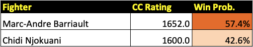After a two-week hiatus, the UFC is back this weekend for UFC Vegas 47. The UFC Vegas 47 prelim card features seven bouts, the final three of which will be previewed in this post. All win probabilities are based on a fighter’s CC Rating and their place in the CC Rankings.
