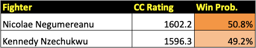 Negumereanu suffered the first loss of his pro career in his UFC debut three years ago. He then turned it around by winning his first ever decision, a split decision over Aleksa Camur. He then stepped back up to his finishing ways, with a 78 second KO of Ike Villanueva. Despite Villanueva’s status as the lowest rated light heavyweight, there are definitely signs of Negumereanu improving. For someone with a 91 percent finishing rate, that’s a scary prospect.