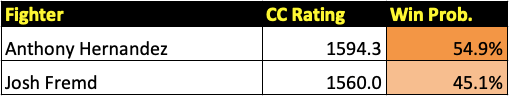 Subjective Spin on Objective Reality: This matchup could cause problems for Hernandex ordinarily. However, with the short notice nature of this bout, Hernandez’s takedown hunting will likely be more successful and easier to wear Fremd down.