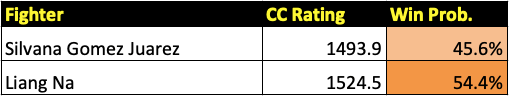 Subjective Spin on Objective Reality: Na has the experience advantage and already has 11 submission wins to her name. Juarez has proven to be very vulnerable to submissions during her time in the UFC. This feels like Na’s strengths align well with Juarez’s weaknesses.
