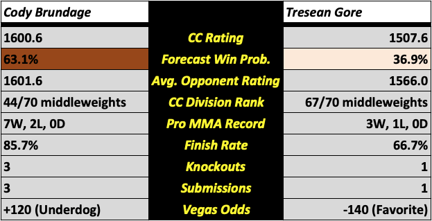 Cody Brundage vs. Tresean Gore (Men’s Middleweight)