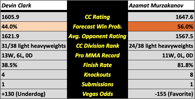 Devin Clark vs. Azamat Murzakanov (Men’s Light Heavyweight)