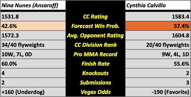 Nina Nunes (Ansaroff) vs. Cynthia Calvillo (Women’s Flyweight)