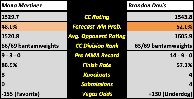 Mana Martinez vs. Brandon Davis (Men’s Bantamweight)
