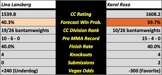 Lina Lansberg vs. [9] Karol Rosa (Women’s Bantamweight)
