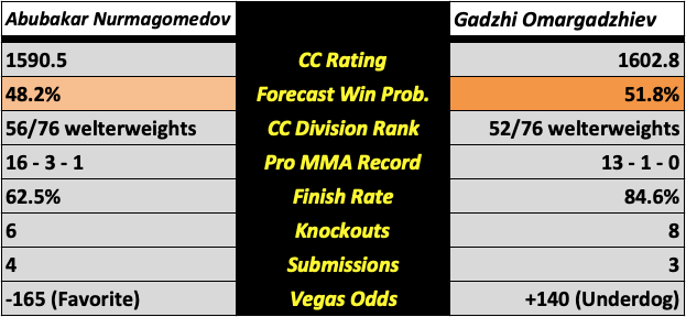 Abubakar Nurmagomedov vs. Gadzhi Omargadzhiev (Men’s Welterweight)