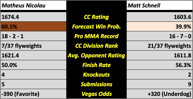 [6] Matheus Nicolau vs. Matt Schnell (Men’s Flyweight)