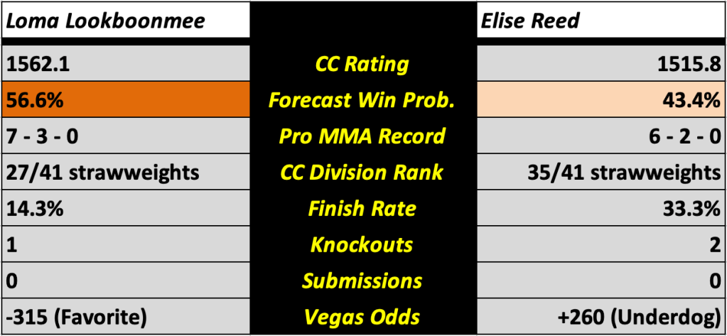 Loma Lookboonmee vs. Elise Reed (Women’s Strawweight)