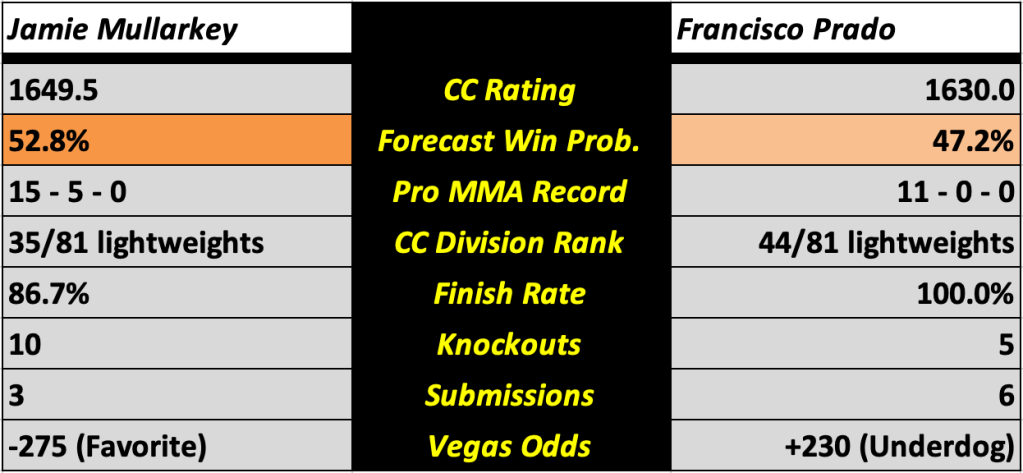 Jamie Mullarkey vs. Francisco Prado (Men’s Lightweight)