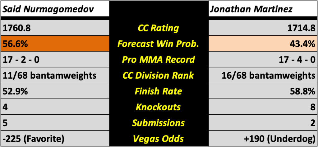 [10] Said Nurmagomedov vs. [15] Jonathan Martinez (Men’s Bantamweight)