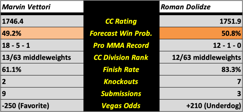 [13] Marvin Vettori vs. [12] Roman Dolidze (Men’s Middleweight)