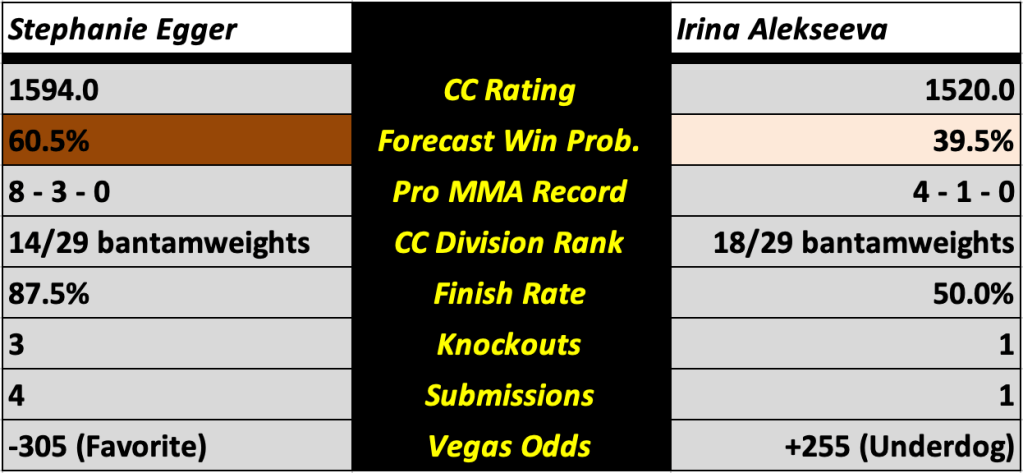 [13] Stephanie Egger vs. Irina Alekseeva (Women’s Bantamweight)