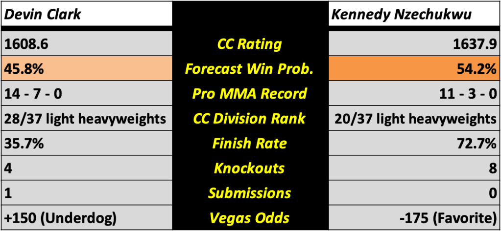 Devin Clark vs. Kennedy Nzechukwu (Men’s Light Heavyweight)