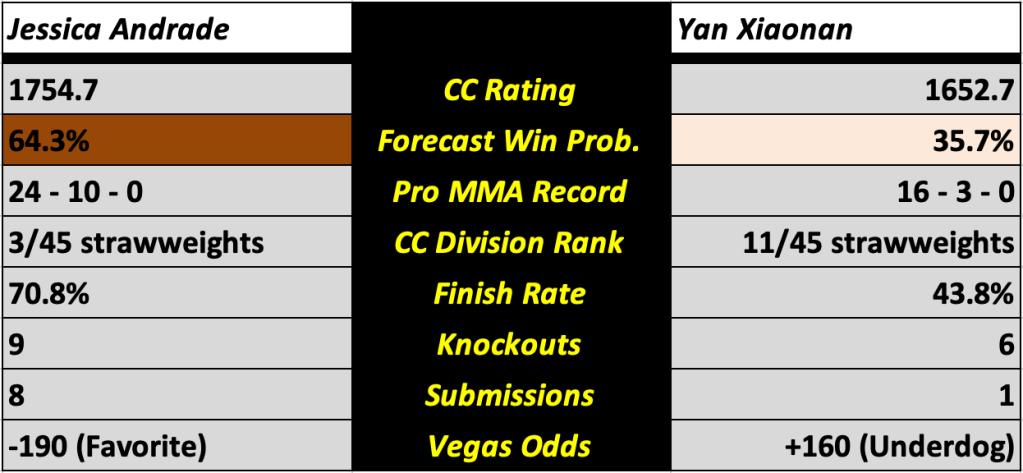 [2] Jessica Andrade vs. [10] Yan Xiaonan (Women’s Strawweight)
