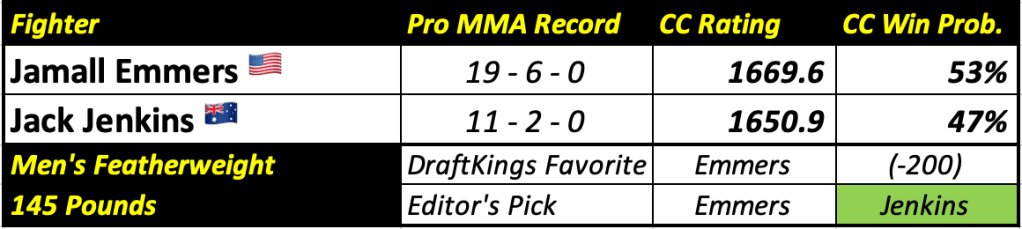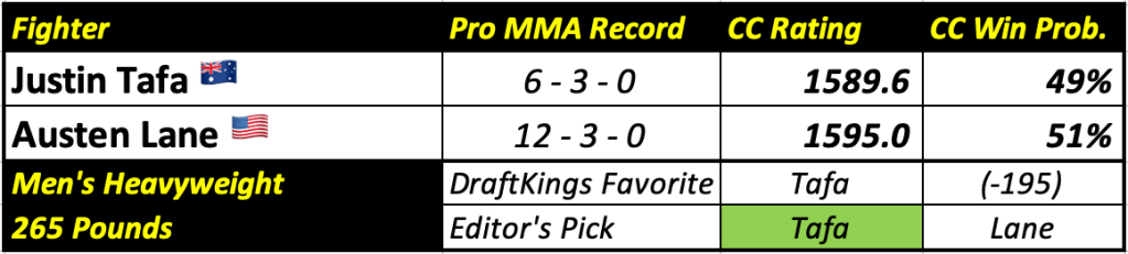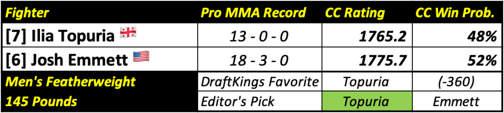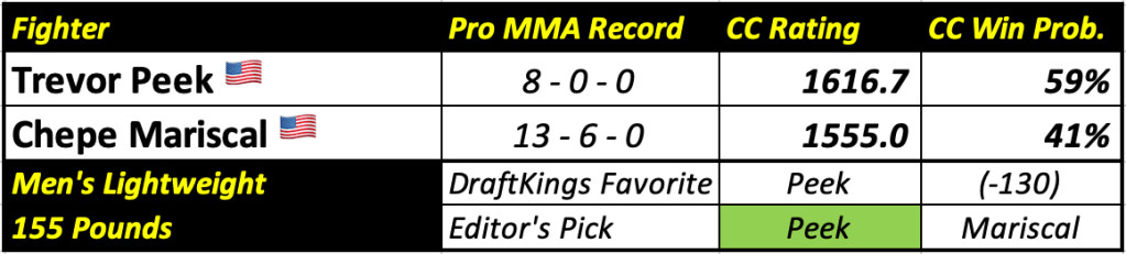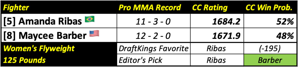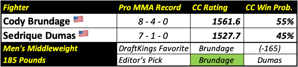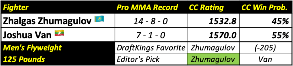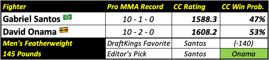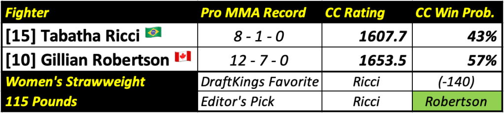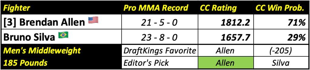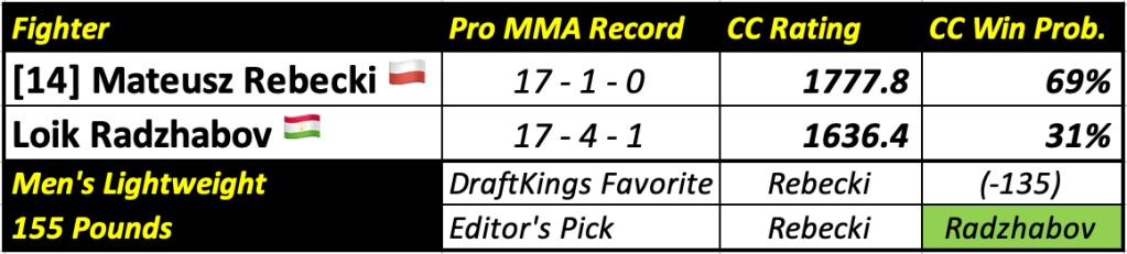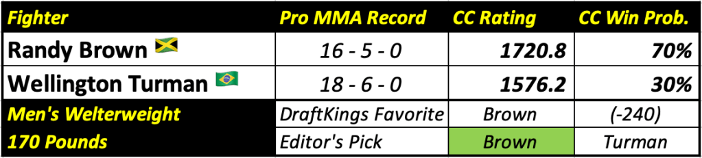 All win probabilities are based off of a fighter’s Cage Calculus (CC) Rating and their place in the CC Rankings.