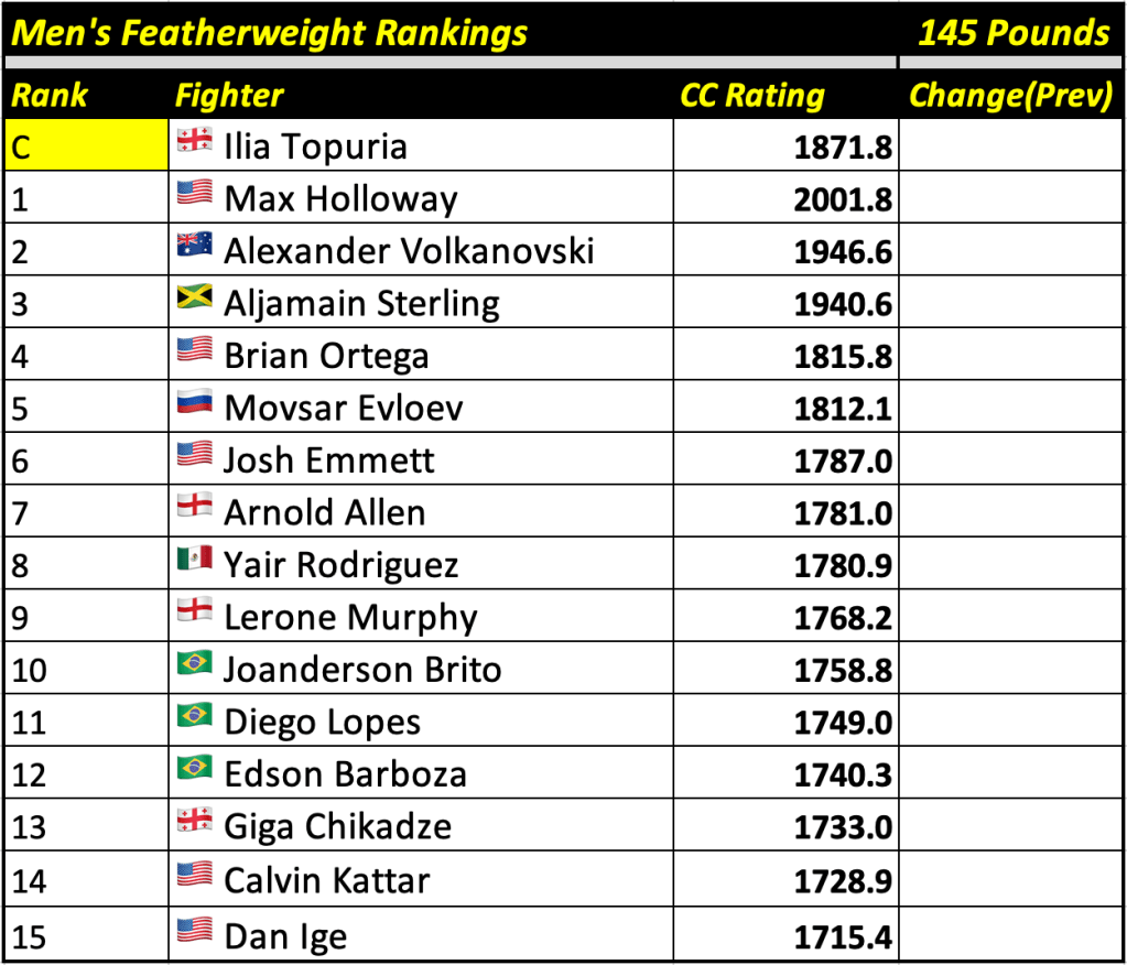 Cage Calculus UFC Rankings (July 25, 2024)