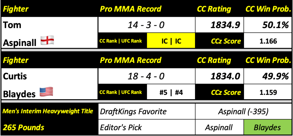 Tom Aspinall vs. Curtis Blaydes (Interim Title Fight Co-Main Event)