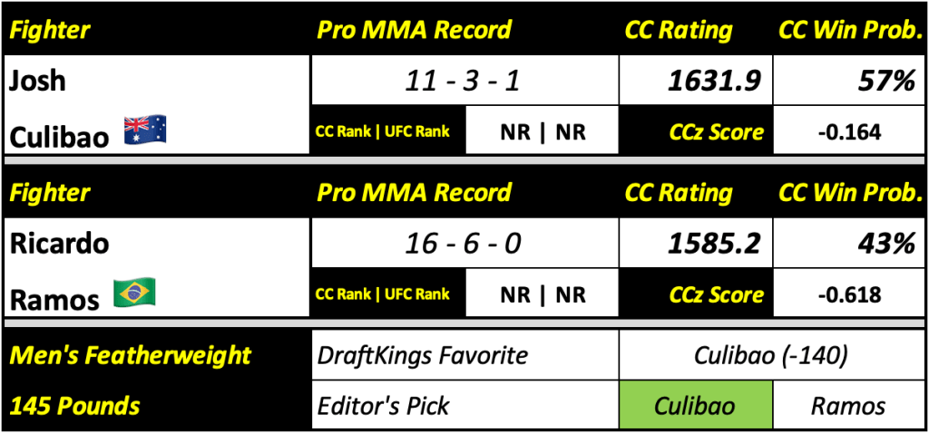 Without further ado, here is the Cage Calculus tale of the tape for this week’s fights!