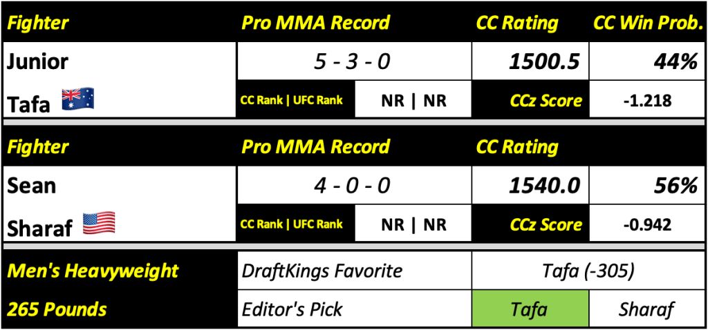 Without further ado, here is the Cage Calculus tale of the tape for this week’s fights!