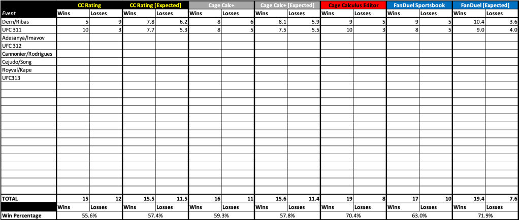 Cage Calculus 2025 Prediction Standings (Jan. 23, 2025)