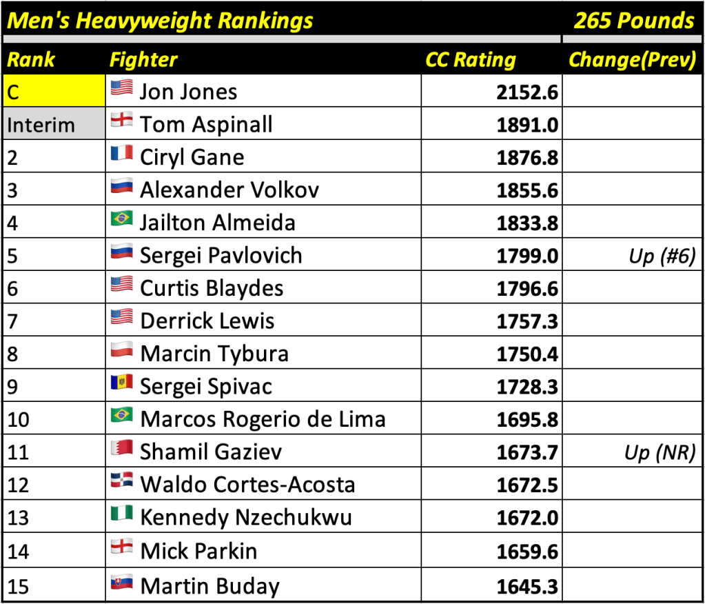 Cage Calculus UFC Rankings (Feb. 7, 2025)