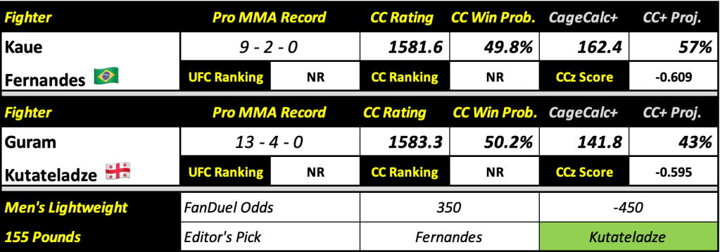 Without further ado, here is the Cage Calculus tale of the tape for this week’s fights!