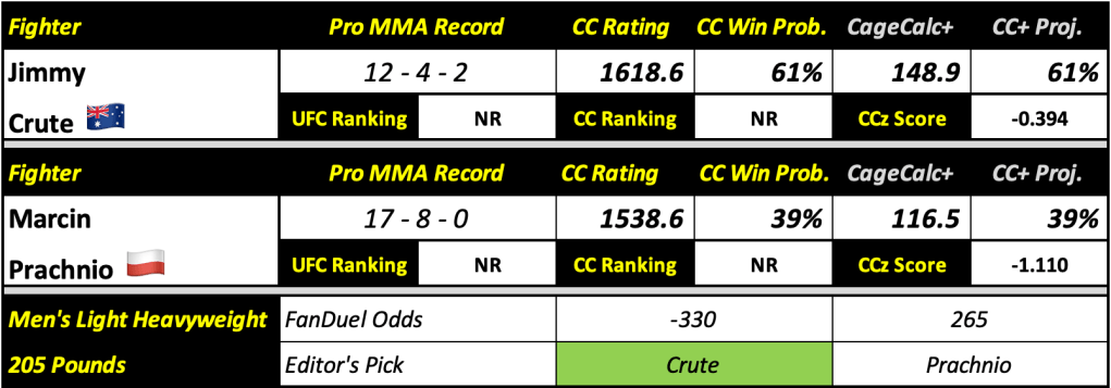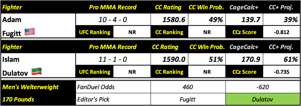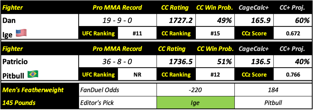 Without further ado, here is the Cage Calculus tale of the tape for this week’s fights!