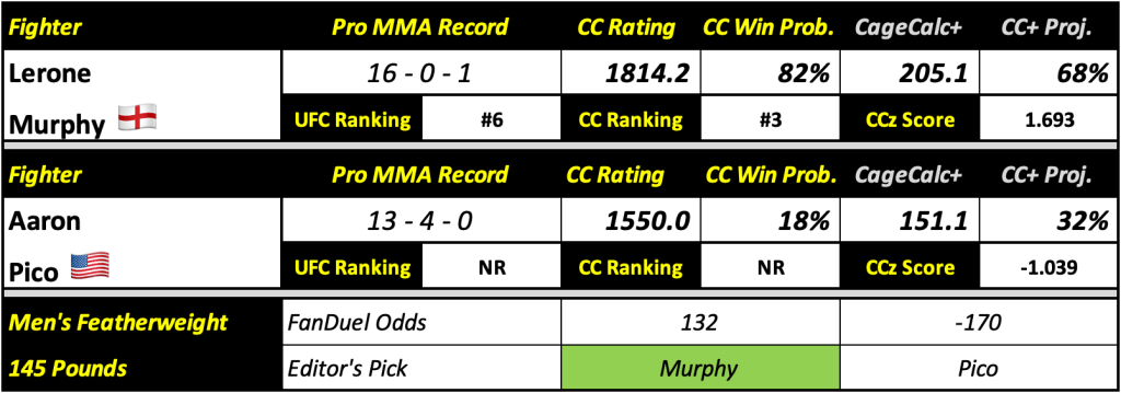 Without further ado, here is the Cage Calculus tale of the tape for this week’s fights!