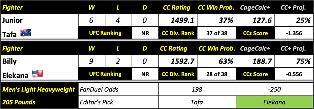 Editor’s Note: Elekana has only ever lost by decision and by submission. Tafa has zero career wins by decision or submission. Tafa has only ever won by knockout. Elekana has never been knocked out in his pro career. Need I say more? This is a bad bad matchup for Tafa.