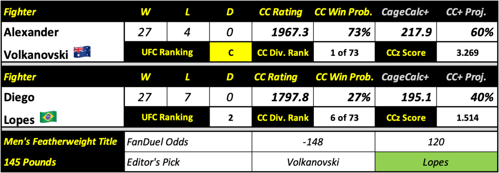 Alexander Volkanovski vs. Diego Lopes (Title Fight Main Event)